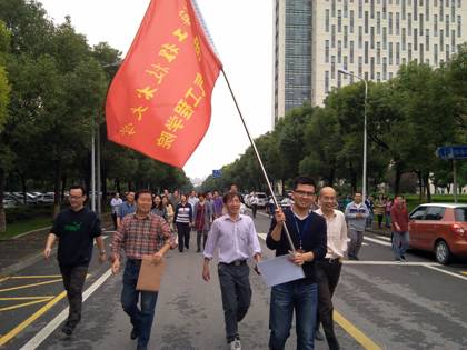 为响应学校工会大力开展全民健身运动的号召,在学院工会的大力发动下,10月31日下午,电子电气工程学院开展环校园“健身竟步走”活动,学院教师纷纷响应。15:30分,天还阴沉沉的,老师们纷纷从自己不同的办公室出来到行政楼东边集合。