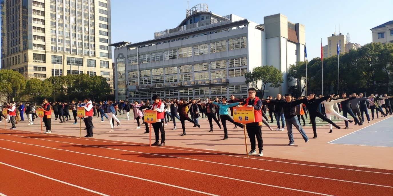 为了加强广大教职工自觉参与全民健身和提高免疫力的意识,把开展课间操(工间操)活动常态化落到实处,结合学院、校落实疫情防控的要求,1月15日下午,高职学院、高级技校工会在体育场举行了以“跳出活力 舞出健康”为主题的第九套广播体操集展演活动,学院、校领导领导班子,全体教职工共同参加了广播操展演,活动由学院、校党委副书记、工会主席李云先主持。