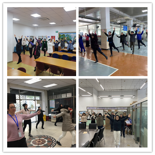 虽然天气寒冷,但体育场上热闹非凡,各部门参展队伍排列整齐,精神饱满,广播操展演活动前进行了简短而庄严的升国旗仪式,全体教职工在《第九套广播体操》欢快的乐曲声中踏着轻松的节拍,伸展、弯腰、踢腿、跳跃,展演出了新时代的精神活力和健康的风景线,本次广播操展演活动以支部为单位分成8支队伍同台展演。