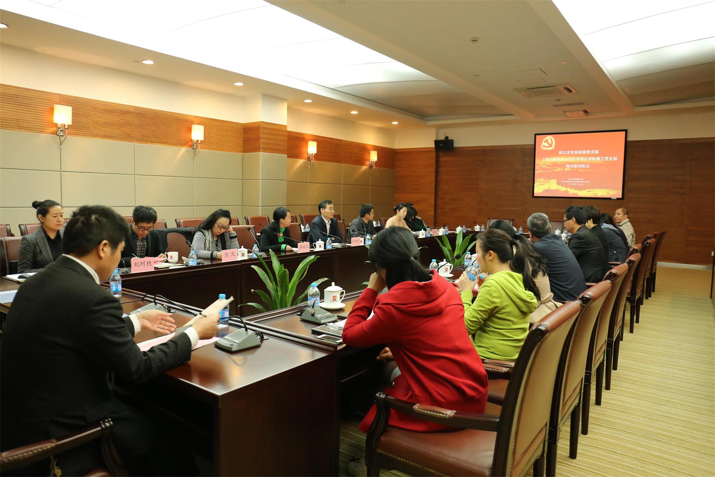 首先,松江文化创意园党支部书记黄勤与艺术设计学院副院长刘珂艳分别介绍了两个单位的基本情况及各自的资源优势。双方在服务型基层党组织结对共建协议上签字,希望通过此次基层服务型党组织结对共建,在理论研究、实践活动、志愿服务等方面进一步加强交流与合作。