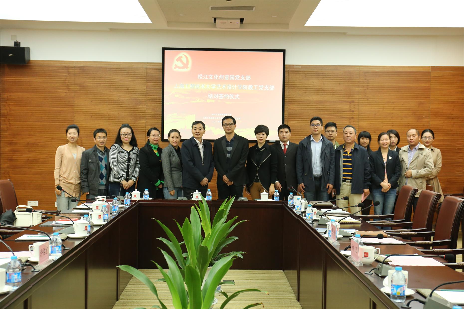 11月10日上午,艺术设计学院教工党支部与松江文化创意园党支部结对签约仪式在松江城市规划展示馆举行。艺术设计学院党总支书记许传宏、副院长刘珂艳、松江新城建设发展有限公司副总经理柳卫、松江文化创意园党支部书记黄勤、艺术设计学院教工党支部书记龚瑶红、陈岚以及部分教师党员代表等出席了此次签约仪式。
