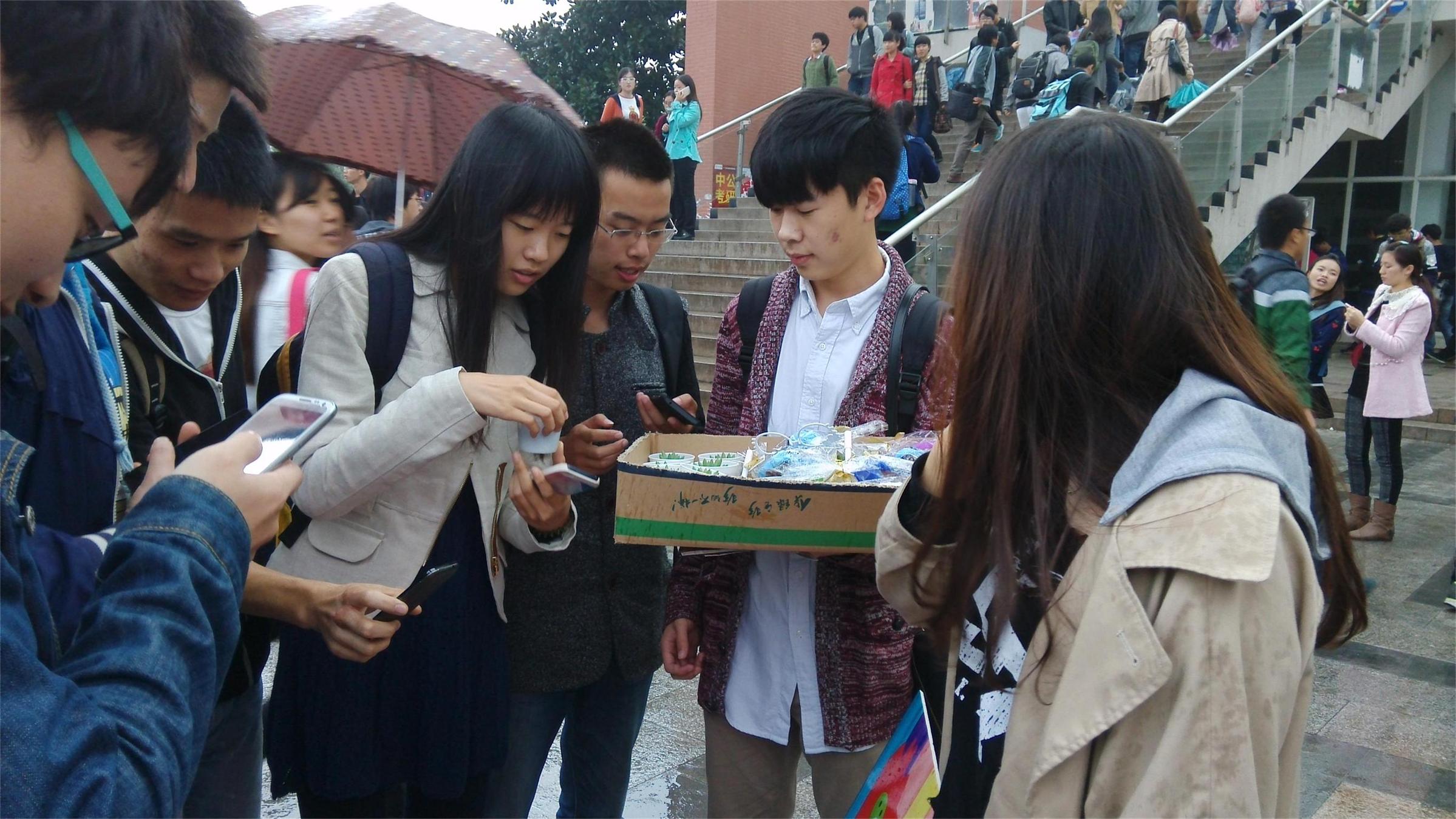 现场活动采取关注微信平台抽奖赠送奖品的方式。凡是关注了管理学院 “Heart心上树洞”微信公众平台的同学可通过抽奖获得各种各样的奖品,充满生命气息的多肉植物、温暖冬日的趣味小狗等礼品吸引同学们踊跃参加,也给他们带了小小的欢乐。此外,通过卡片的形式收集同学们“2014年的遗憾”和“2015年的梦想”,对大学生的心理状况取样,以便后期有针对性的通过微信平台推送心理知识。