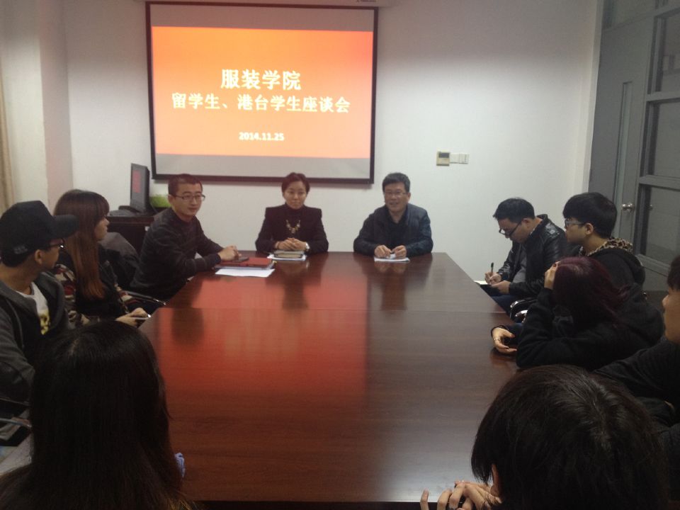 11月25日,服装学院留学生、港台学生座谈会在艺术楼会议室召开。学院党委书记袁蓉、院长胡守忠、院党委副书记李扬,院学生事务辅导员王安浩以及服装学院全体留学生、港台学生参加了此次会议。