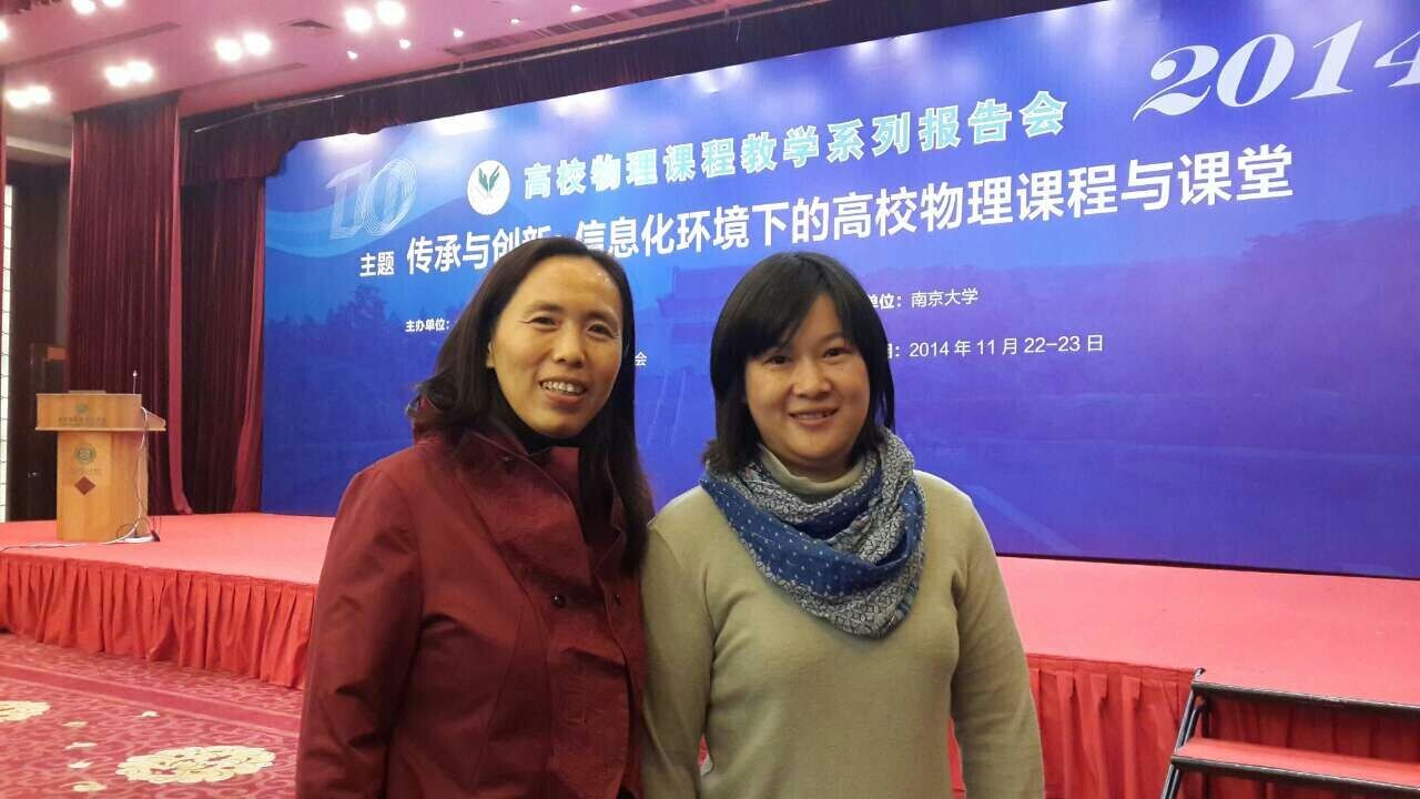 11月22日至23日,由全国高等学校教学研究中心、全国高等学校教学研究会、教育部高等学校物理类相关教学指导委员会、中国物理学会教学委员会、高等教育出版社与有关高校共同主办的“2014年大学物理教育教学改革研讨会”——原大学物理课程报告论坛在南京大学召开,我校基础教学学院物理教学部的徐红霞教师和汪丽莉教师参加了此次会议。