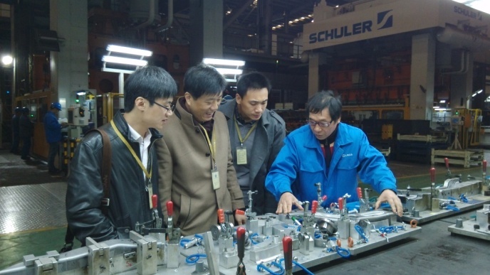 12月9日下午,应上海汇众汽车集团有限公司SDM模具开发中心邀请,高职学院制造工程系主任万军,模具设计与制造专业的姜华、杨梅、王浩等教师探访了上海汇众汽车制造有限公司的“冲压——模具联合技师工作室”。