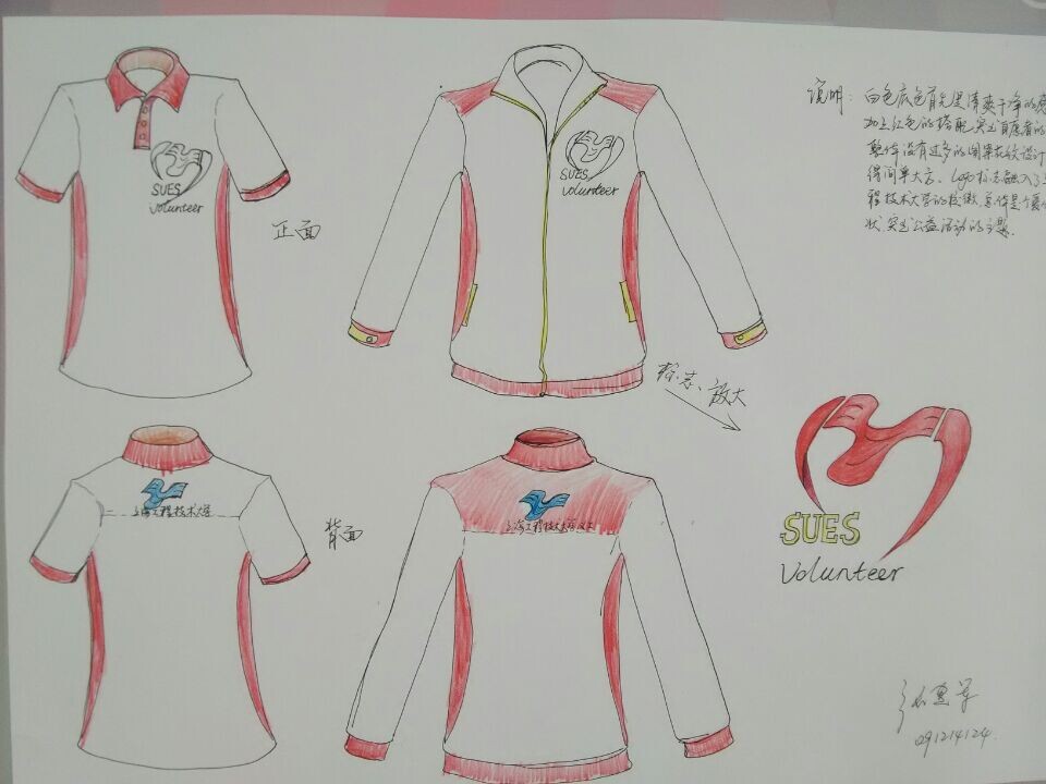 12月15日,校“公益服装•时尚设计”大学生义工队服装设计大赛圆满落幕。期间,同学们积极参与,共收到作品78幅,其中服装学院作品71幅,其他学院作品7幅;其中入围作品15幅。每一幅作品都凝聚了学生的想象力和创造力,也体现了他们对公益的理解。其中张建军同学和宗玉乐同学的作品,充分发挥各自的专业特长,分别将上海工程技术大学校徽“工”和“爱心”完美结合,十分契合本次大赛的主题,分获大赛特等奖和一等奖。另外,还有三名同学获得大赛二等奖,五名同学获得大赛三等奖。