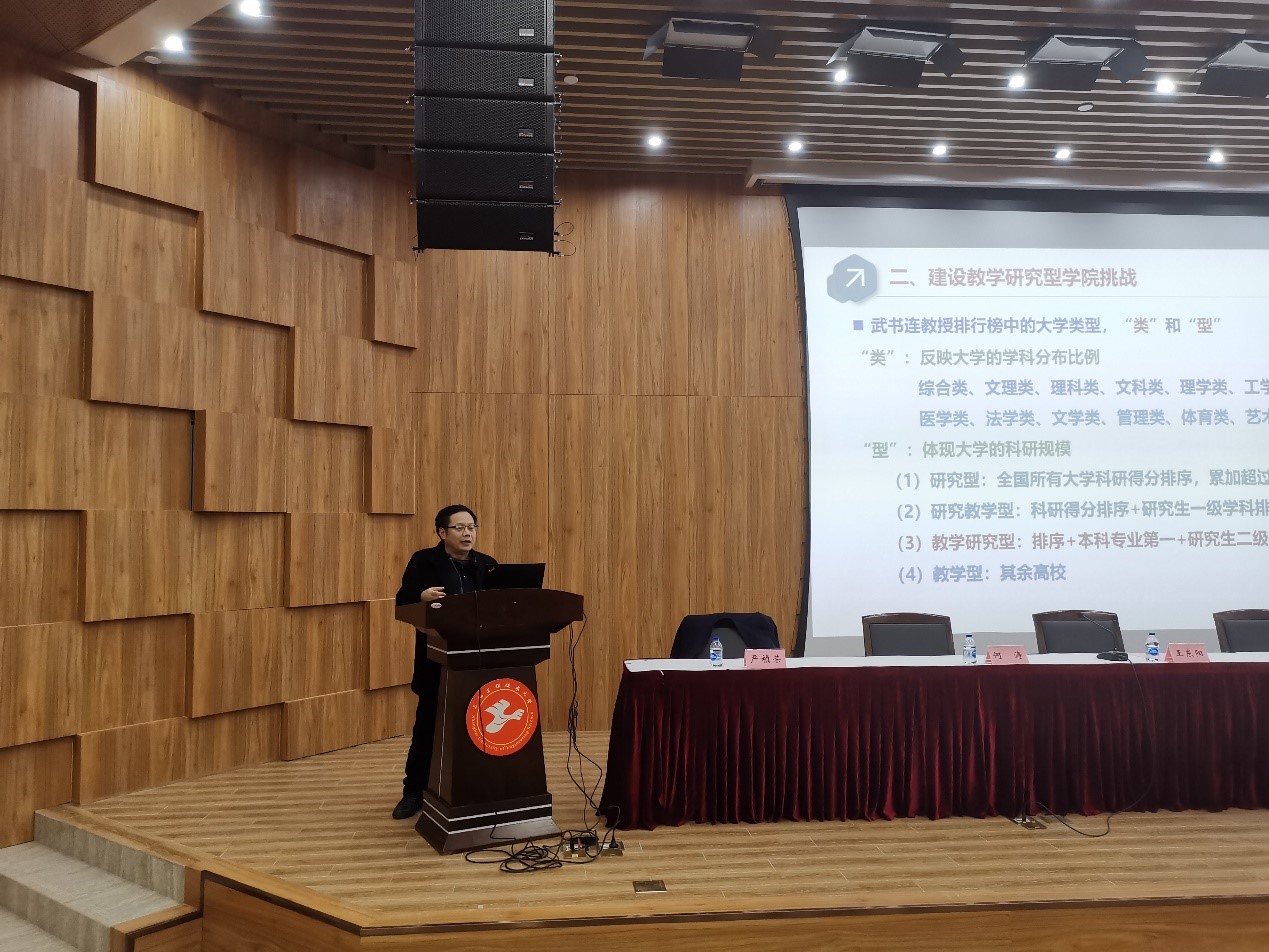 党委副书记、院长张华作了题为《群策群力,实现学院跨越式发展》的报告。2020年学院确立了建设教学研究型学院的奋斗目标,这既是学院主动适应高等教育发展的要求,也是学院进行转型升级,实现跨越式发展的必然选择。张华院长全面剖析了教学研究型学院的内涵,以及建设教学研究型学院所面临的挑战。面对已经到来的2021年,他号召全体教职工要秉承学院文化精神,落实立德树人根本任务,充分发挥区域优势,实现跨越式发展,全面建设教学研究型学院。张华院长指出,学院的发展离不开每一位教职工的辛勤耕耘,勉励大家携手共进,共创建院美好未来。