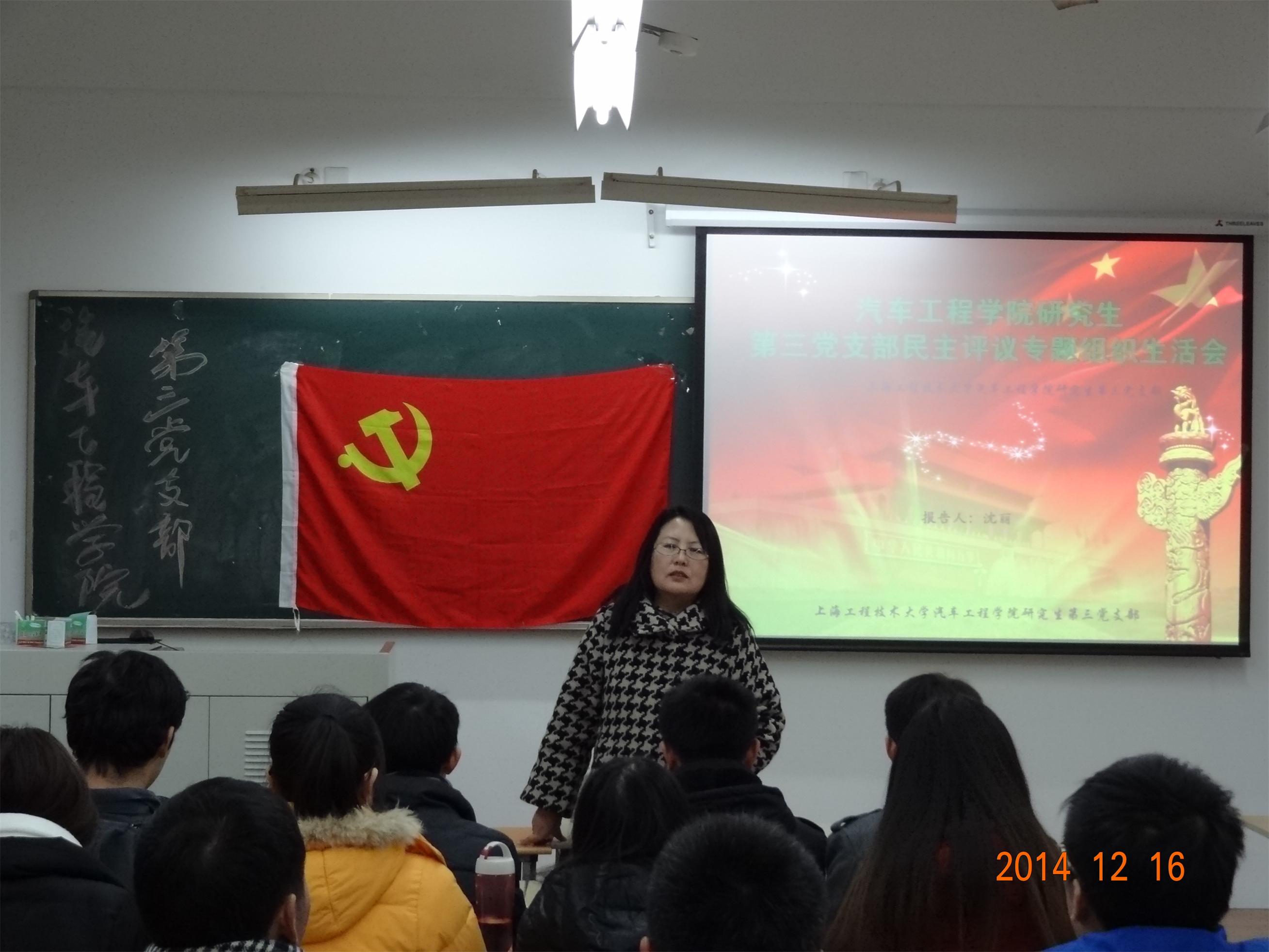 12月16日,汽车工程学院研究生第三党支部书记沈丽老师在教学楼B106组织召开了本支部本年度民主评议专题组织生活会。