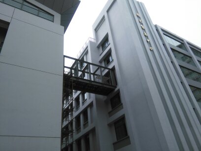 师生活动中心是学院、校于2007年建成并使用的多层建筑,楼内无电梯设施,使用功能上存在缺陷,造成极大的不便。在今年建设的图文信息中心工程中,利用该楼内的电梯,通过连廊弥补该缺陷。为保证工程质量,校建办与施工单位、施工监理单位反复协调,经过多次测算、修改吊装施工方案,终于一次吊装成功,达到了设计要求。