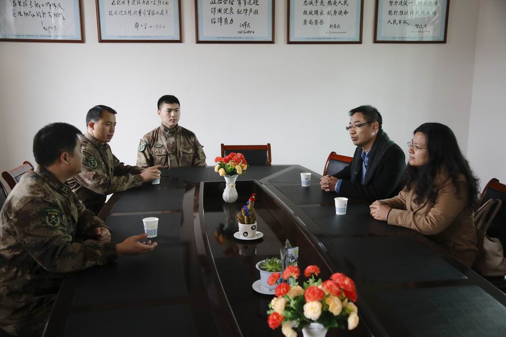 为进一步促进军校共建,做好入伍学生跟踪服务工作,1月15日,艺术设计学院党总支副书记李云先,校武装部薛辉老师,艺术设计学院国防教育负责教师裘立行一行三人来到宝山某陆军部队慰问学院2013年入伍学生陆雨芨。