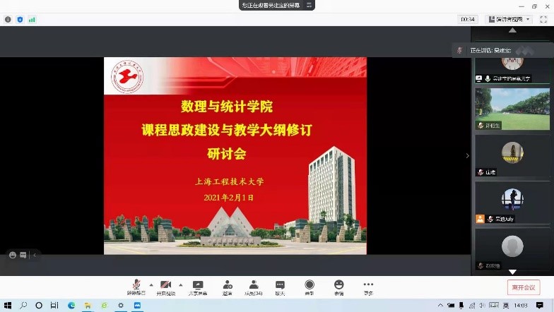 2月1日下午,根据学校关于课程思政建设与教学大纲修订的总体安排,为了推进数理与统计学院公共基础课程和数据计算及应用专业的专业课程体系思政建设与大纲修订,数理与统计学院线上召开“课程思政建设与教学大纲修订研讨会”。钱慧敏书记、殷志祥院长、许伯生副书记、王国强副院长、各系部主任及负责课程教学大纲修订的任课教师参加了会议,会议由吴建宝副院长主持。
