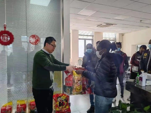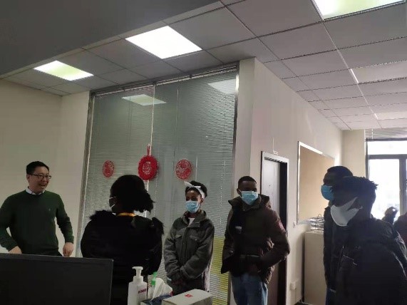 2月2日,国际教育学院副院长王武东、国际学生办公室主任钱季玉冰一行来到国际学生事务中心和学生宿舍,慰问国际教育学院的留校国际学生。