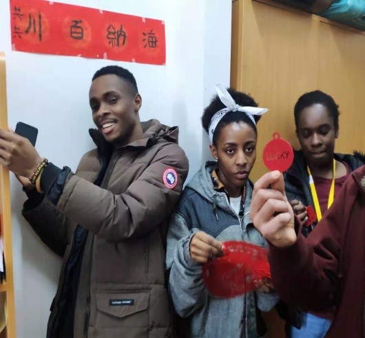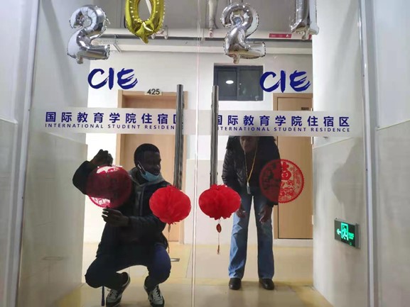 为了让国际学生感受中国春节的传统年味儿,国际教育学院老师们来到学生宿舍,带着大家一起贴福字挂灯笼,让大家的小家更加温暖。同学们兴奋地挑选自己喜爱的窗花、挂饰,装饰起宿舍来。男生女生还分别组队比赛,看哪一组把窗花贴得又正又快。热闹的迎新年文化体验结束时,大家用中文唱起了“新年好”,载歌载舞,一起期盼崭新的一年。