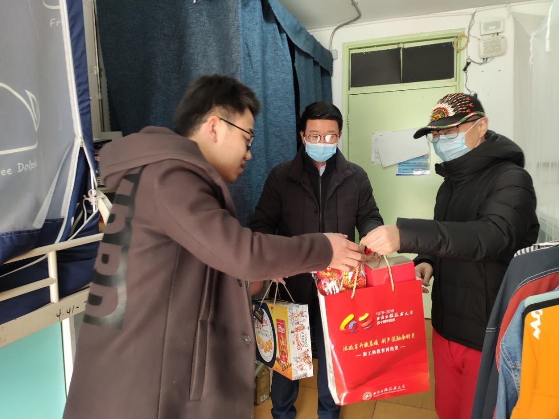 学院特意为因疫情阻隔、在校完成研究任务等原因不能按时返乡欢度新春佳节的学生准备了新年吉祥礼包、防疫防护用品,赠送了书籍。
