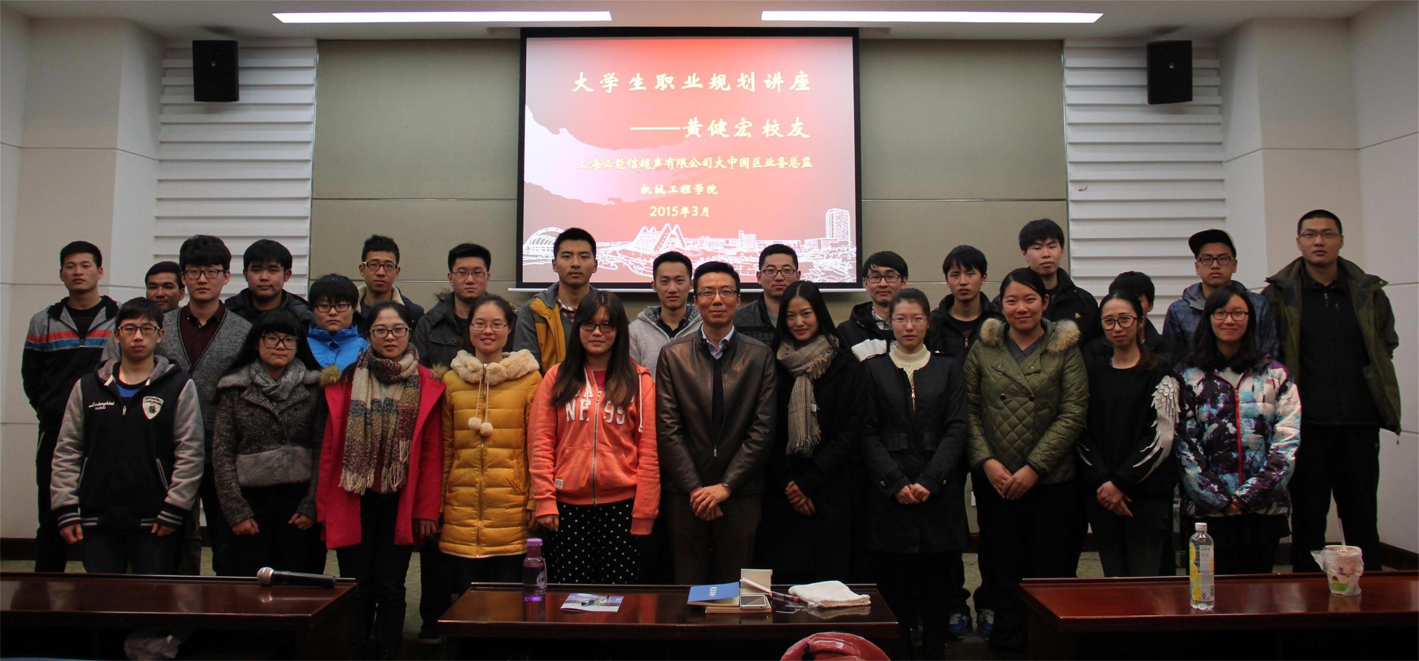 3月12日,我校校友必能信超声(上海)有限公司亚洲区销售总监黄健宏先生应邀出席机械工程学院能源与环境系统工程专业的大学生职业指导座谈会,座谈会在图文信息中心第四报告厅举行。