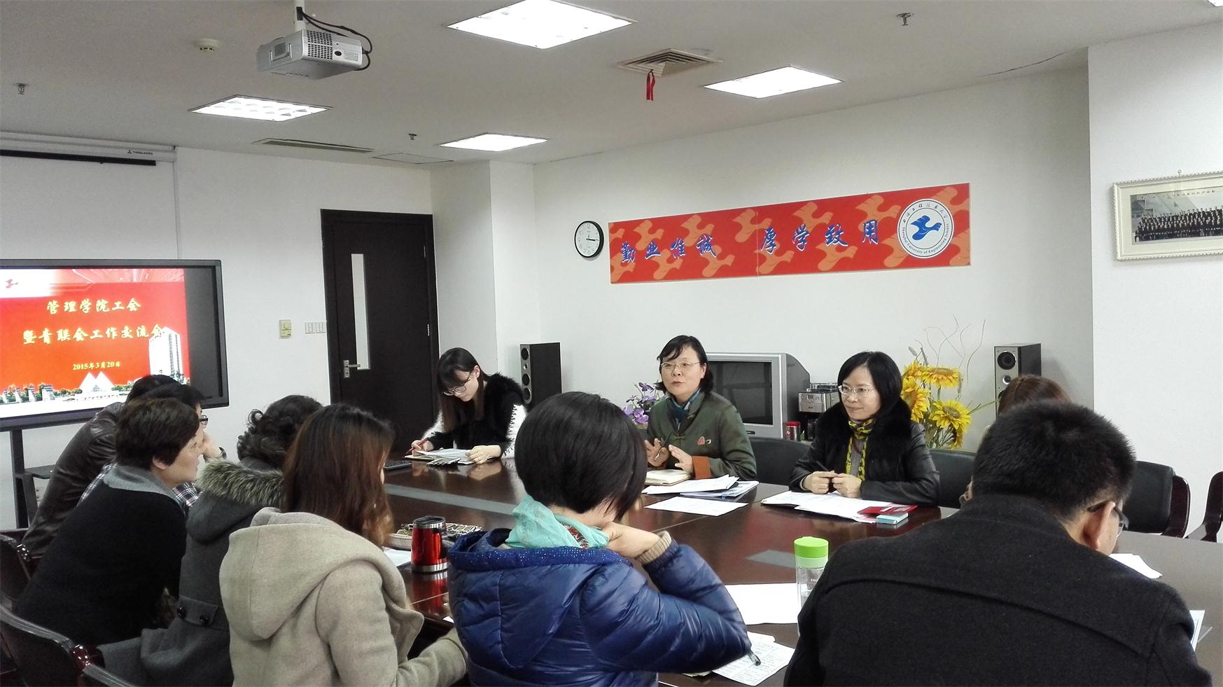 3月20日下午,管理学院在行政楼612室召开工会和青年教师联谊分会的工作会议,专题研讨今年工作计划,学院党委书记吴清老师,工会主席陈雅萍老师、青联会分会会长栾东庆老师,以及工会委员、工会组长以及学院青联会的各位理事参加了会议。