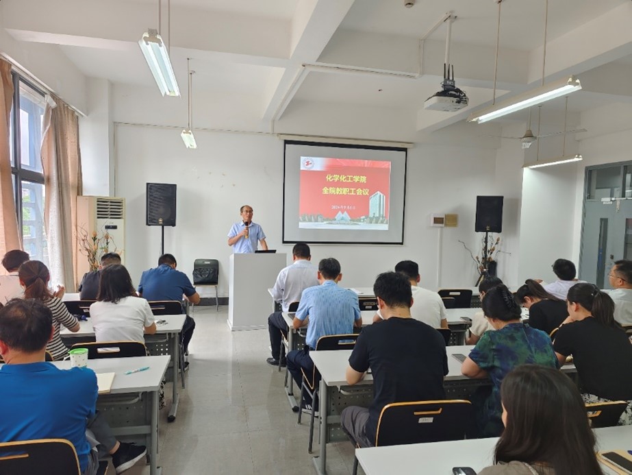 为传达学校相关会议精神和工作要求,部署新学期学院相关工作安排,化学化工学院于9月6日在实训楼4418室召开全院教职工大会,会议由学院党委副书记、院长王金果主持。