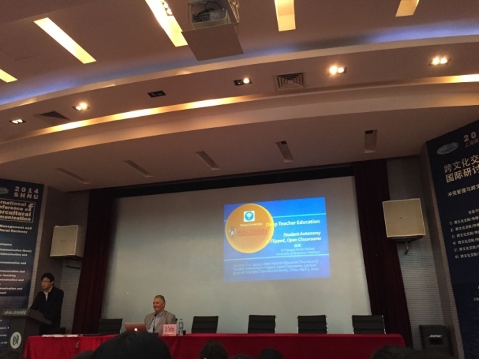 讲座主要从教育理念和策略设计建构的角度对当前高等教育界流行的“慕课”(MOOCs)和“翻转课堂”(the Flipped Classroom)进行了解读。Dr.Tochon在网络技术、智能化迅速发展的大背景介绍基础上,展示了教师如何开始逐步建构远距离学习环境。从翻转课堂开始,交替使用课内(面对面)和允许学生共享资源、知识、获得教学反馈,进行启发性地线上教育。Self-directed learning、learner-centered approach都强调了教师角色从指导者到辅助者的转变,通过线上手段使用、给学生充分选择空间及使学习成为一种engagement(契约)等使学生展现更多能量从而加强学习效果。