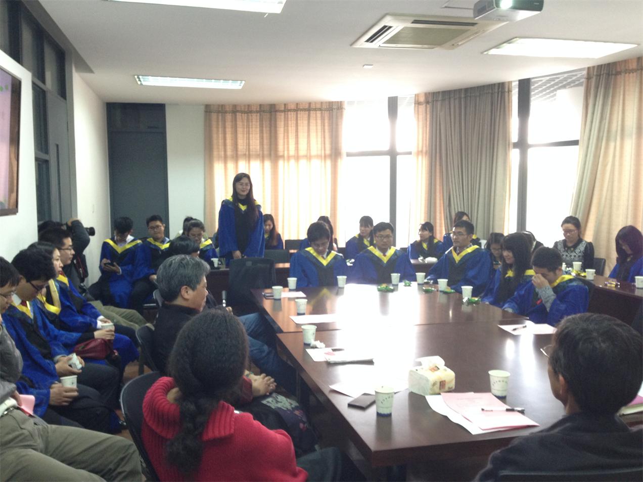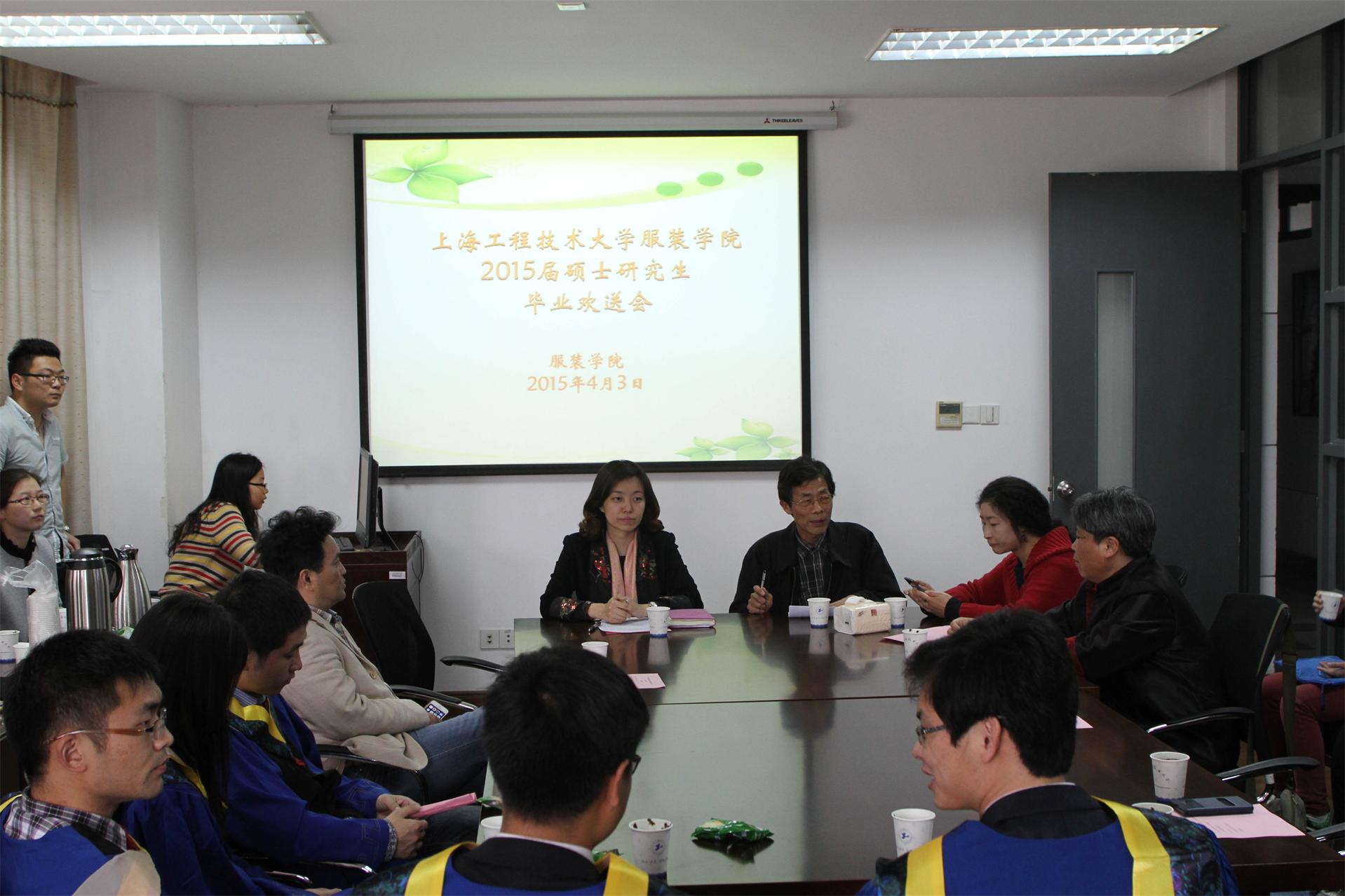 会上,沈勇副院长首先总结回顾了服装学院2015届硕士研究生总体情况,2015届研究生在校期间取得丰硕成果,本届学生发表SCI论文4篇,2名同学获得国家奖学金,与此同时,2015届同学发表了大量的核心期刊论文,获得多项专利,荣获国家级、省部级的多项荣誉。最后,通过导师和学生的共同努力圆满完成了研究生期间的课程任务和毕业论文,可谓收获颇丰,硕果累累。
