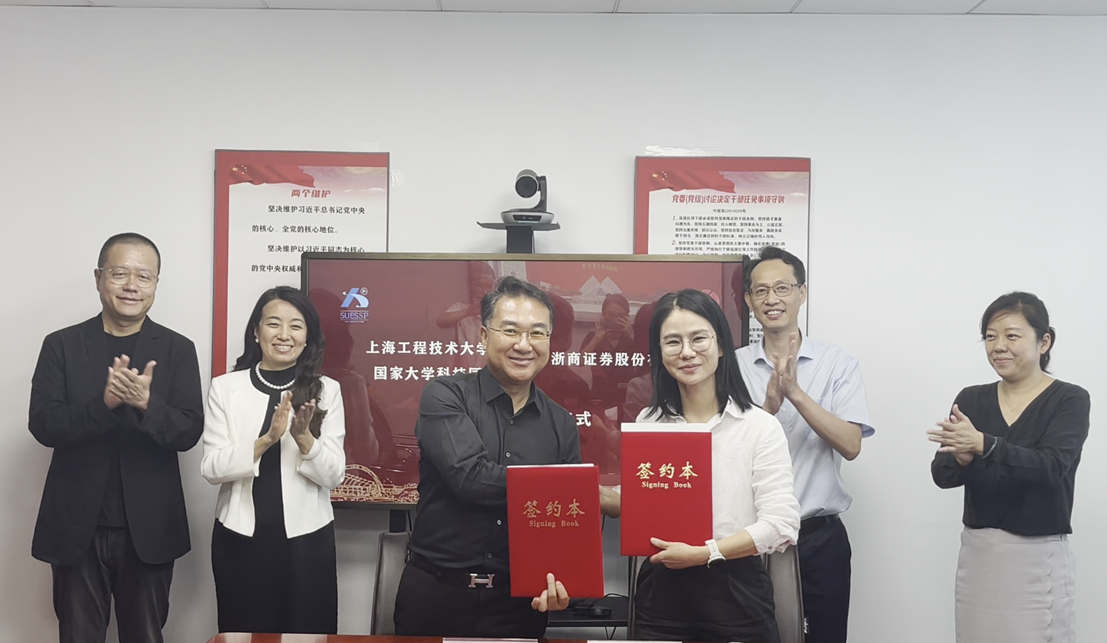 9月13日,科技园与浙商证券股份有限公司签署战略合作协议。浙商证券股份有限公司总裁助理胡南生,企业金融部总经理应文敏,上海第一分公司负责人陈嫒,上海第一分公司总经理助理吕富强,企业金融部风控专员叶文选;财经头条联合创始人陈寒健;上海工程技术大学国家大学科技园董事长袁蓉、总经理杨立东、副总经理覃旭瑞及其它相关负责人出席签约仪式,本次活动由科技园董事长袁蓉主持。