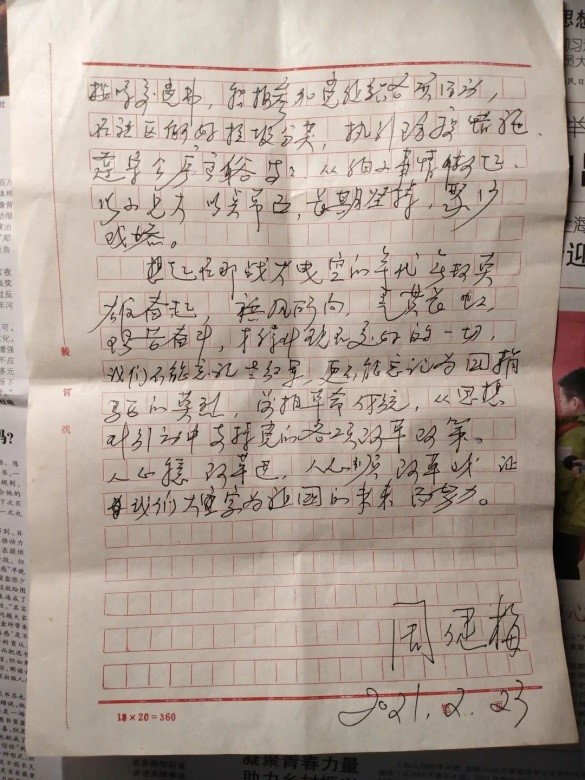 这封回信对我们这些退休干部发挥余热也有指导意义,对于我来说生于50年代,没有经历过革命战争岁月的洗礼,但是我们对于我党在五六十年代领导全国人民战胜经济困难,建设社会主义国家记忆犹新,对改革开放,中国人民富起来,强起来的历史过程有切身体会,用这些体会给下一代讲故事,教育年轻一代不忘初心、牢记使命、坚定信念。