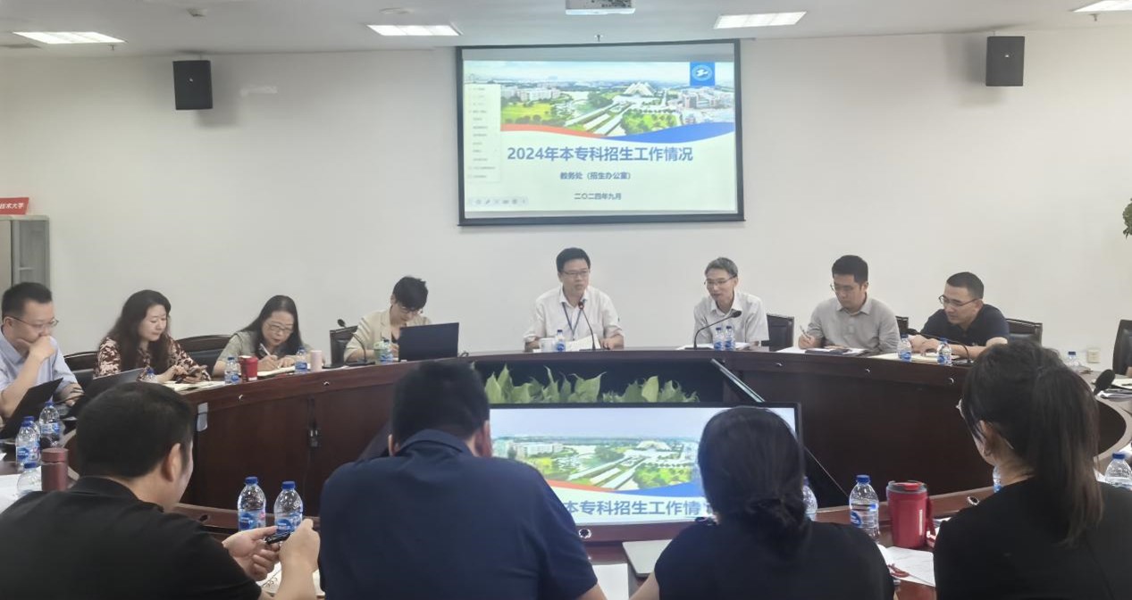 9月19日,学校召开招生工作专题研讨会。夏春明副校长出席会议,教务处、质量办、对外联络办、各院部(中心)分管教学的负责人参会,招生办公室周慧艳主任作专题介绍,会议由教务处处长饶品华主持。