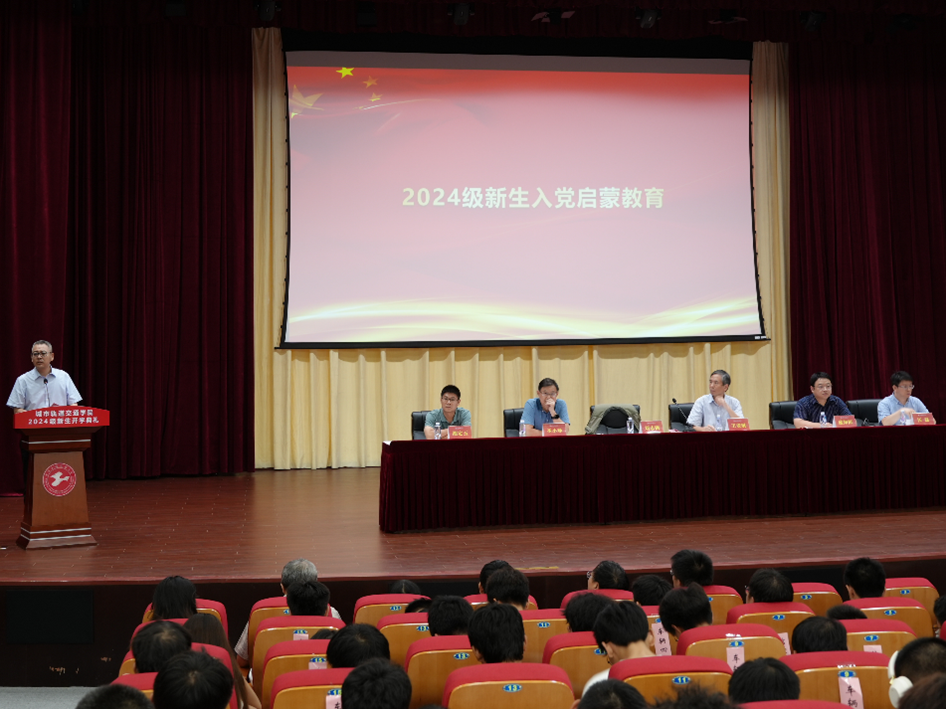 刘志钢代表学院对全体新生表示热烈的欢迎,向同学们介绍了学院创立的背景以及发展历程,讲述了学院近年来开展的特色专业活动和一系列耀人成绩。刘志钢为全体新生开展入党启蒙教育,强调了入党的重要意义,指出这不仅是对个人信仰的坚定选择,更是将个人理想融入党和人民事业的具体行动。他殷切嘱托各位同学,一要修身立德,志存高远,在胸怀家国中勇担使命;二要笃学不怠,勤学不息,在追求卓越中全面发展;三要心有大我,美美与共,在协作奋进中彰显作为。