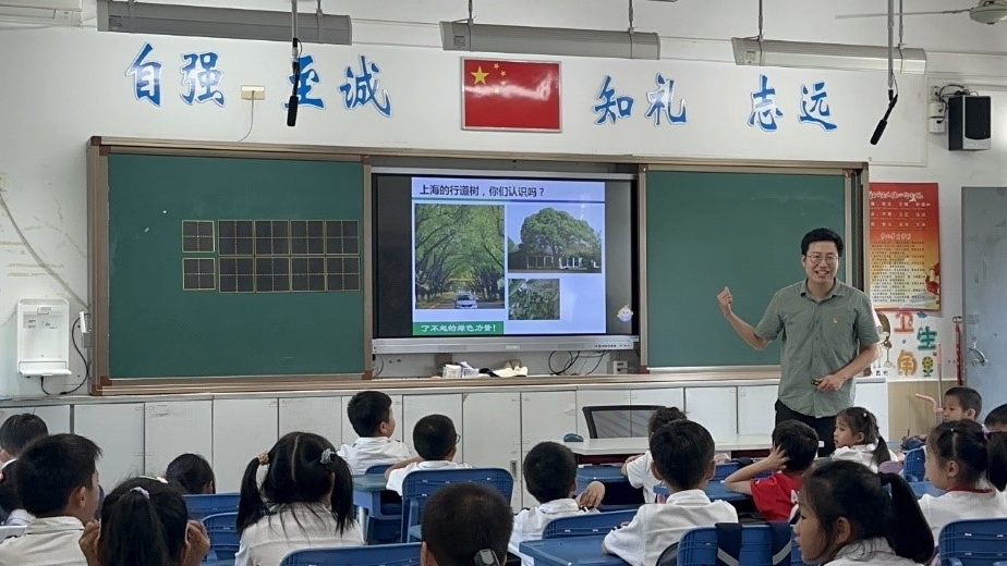 9月23日,化学化工学院环境工程系科普团队为上海外国语大学松江外国语学校(简称“上外松外”)二年级学生带来了一堂有趣的科学素养课。这是该团队为中小学生研发的《碳之足迹》课程中的一讲,包含科普讲座和实践体验两个环节,旨在帮助青少年树立人与自然和谐共处的观念,引导青少年践行绿色低碳生活方式,提高青少年科学素养和综合创新能力。
