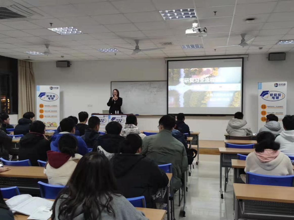 学院党委副书记戴振华首先对赵磊老师的到来表示热烈欢迎,并嘱咐在场同学对于考研工作提前规划、提前准备,希望同学们通过此次交流会收获满满的“干货”。赵磊老师从考研数据、考研基础常识、院校如何选择、全程复习规划这四个方面,系统性地为广大学生们规划未来考研道路,结合自身多年的考研辅导经验深入浅出地解答同学们的各种困惑与不解。吴晓东老师为同学们介绍了近年来大学生考研整体形势和我校及学院的具体情况,并根据学院专业特色给出了具体意见和建议。