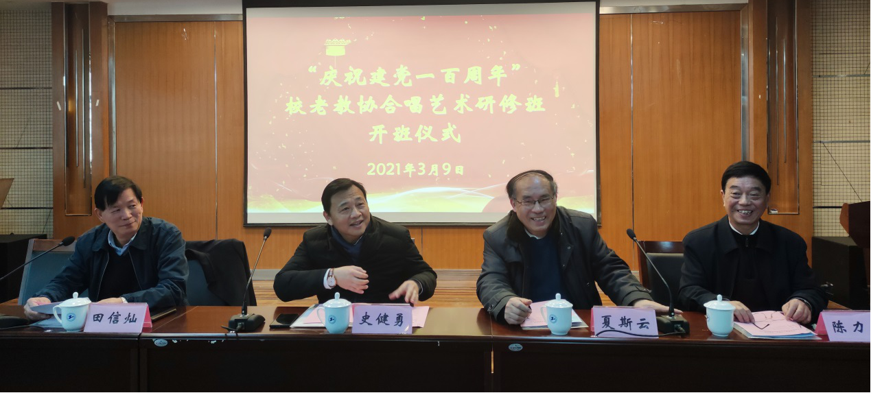 史健勇副书记指出,本次合唱艺术研修班的主题是庆祝建党百年,希望通过研修班的学习,表达对党、生活、老教协的热爱,提高素养的同时老有所乐,展示老教授的精神风貌和风采。