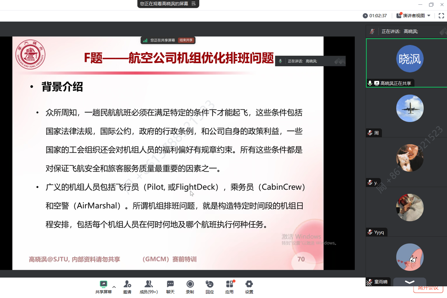 在研究生处的大力支持下,9月18日,数理与统计学院特邀上海交通大学计算机科学与工程系教授、博士生导师高晓沨教授为我校即将参加全国研究生数学建模竞赛的研究生开展赛前培训。