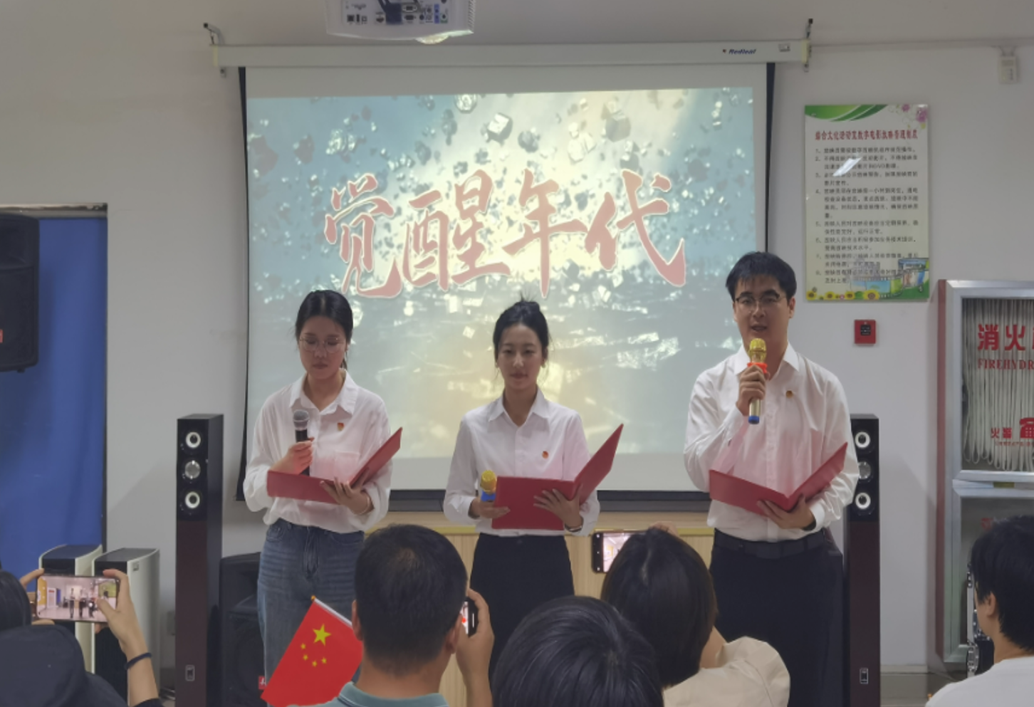 管理学院的学生代表贾萍、汪梅、胡自丰就《红星照耀中国》一书进行了红色经典沉浸式导读,在那段光辉岁月的视频背景下,他们用激昂的声音、饱满的情感,以情带声,以声传情,带领观众一同感悟红色文化的精神,在红色记忆中汲取催人奋进的力量,这部红色经典作品在同学们的精彩演绎下,焕发出新的活力与光彩。