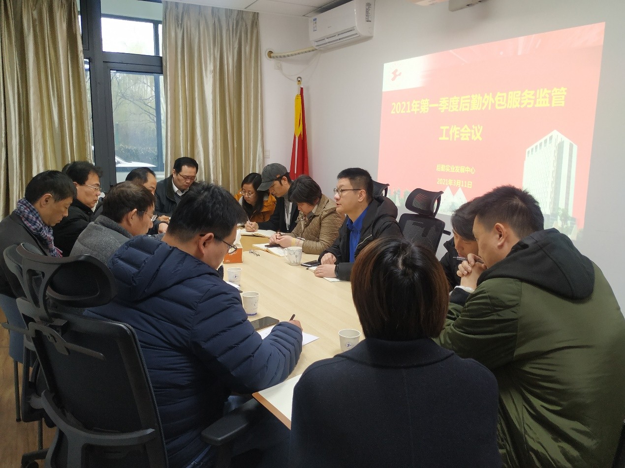 3月11日上午,后发中心在后勤综合楼会议室召开2021年第一季度外包服务监管工作会议。中心班子成员,相关科室负责人及后勤外包服务单位负责人参加会议,会议由后发中心主任王佳杰主持。