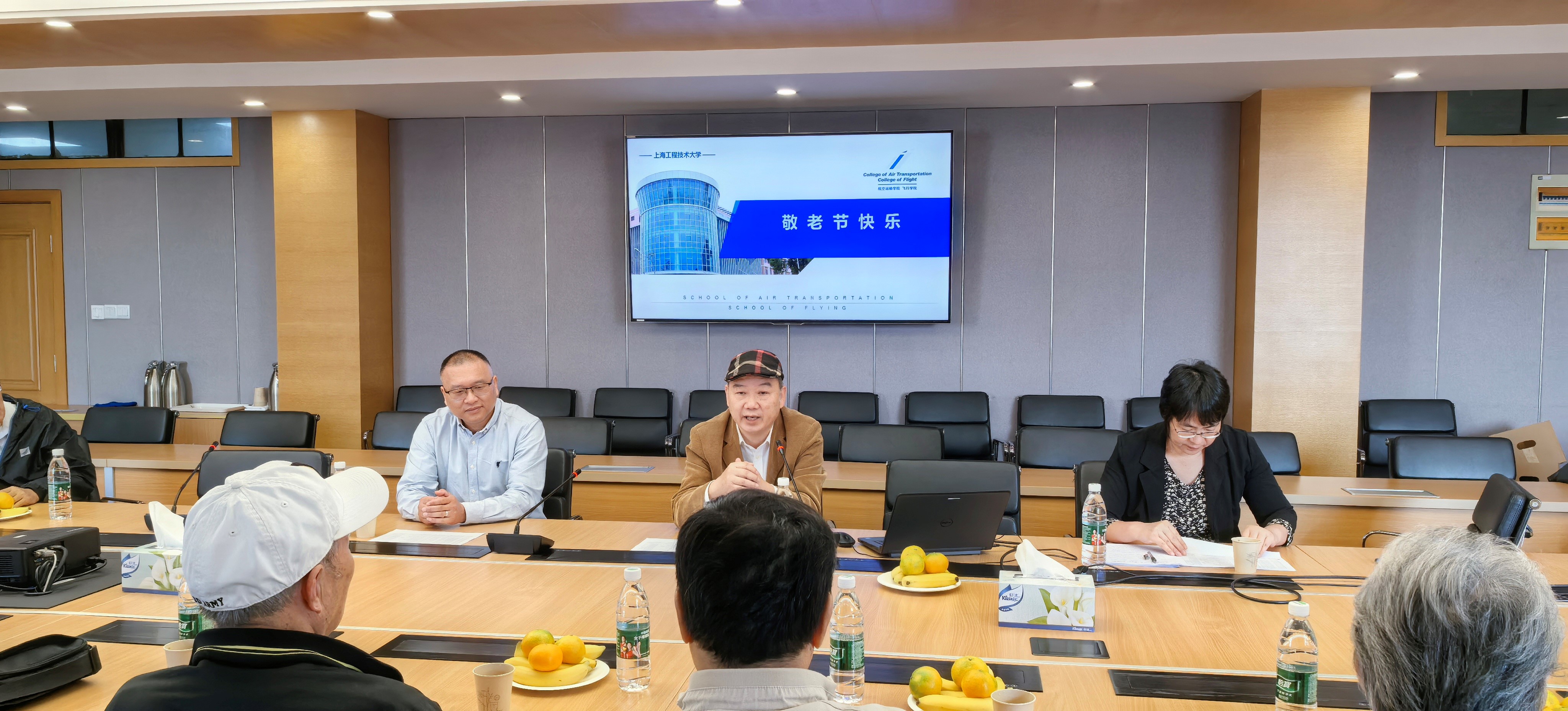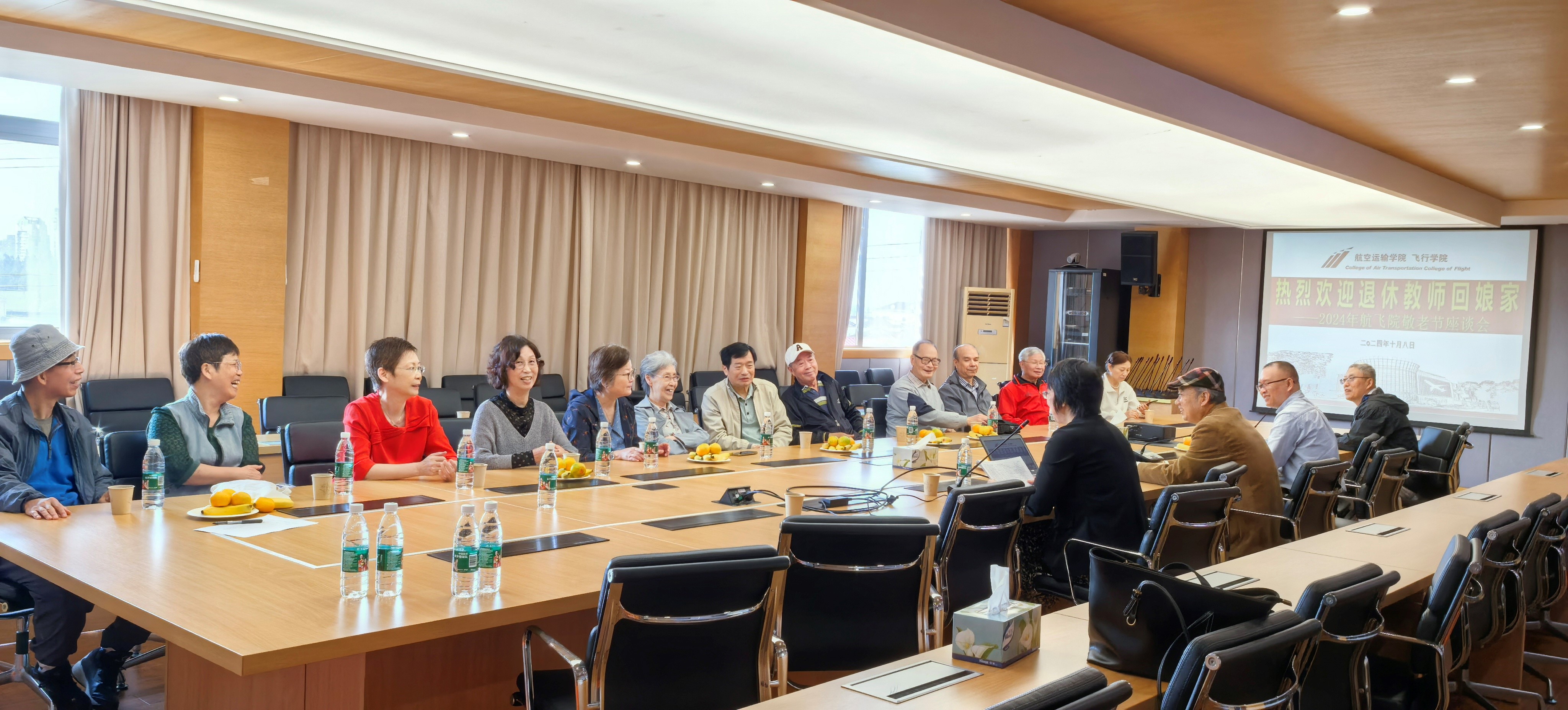10月8日上午,航空运输学院(飞行学院)庆祝新中国成立75周年暨敬老节慰问座谈会在长宁校区科创楼725会议室举行,学院退休教师、党政领导、工会主席、女工委员和青年教师代表等欢聚一堂,喜度重阳佳节。