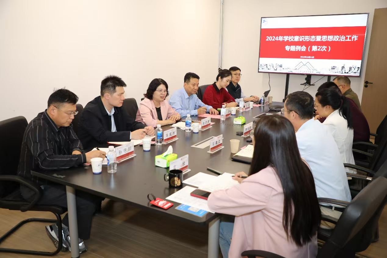 朱晓青通报了市委巡视市属高校反馈的意识形态方面的一些共性问题,就落实意识形态工作提出四点要求:一是坚定主心骨、强化组织领导,在压实意识形态工作责任落实、做好顶层设计、规范化制度管理方面更加深入有力。二是深化主旋律、不断强化理论武装,深化中心组学习制度,结合学院特色做好意识形态专题学习,今年重点做好党的二十届三中全会精神、全国教育大会精神的学习,贴合教师学生学习方式多样化。三是聚焦主攻点、强化目标导向,落实整改目标,加强对韩籍教师的沟通引导,强化学生的思想认同,充分运用好关工委老同志、学业导师等方面的力量,强化协同育人。四是筑牢主阵地、强化协同联动,发挥思想引领、舆论推动的重要作用,网络空间管理到位,社团落实双导师制。五是唱响主旋律、强化舆论引导,加强正面宣传引导,做好环境内容建设,拓宽对外传播渠道。