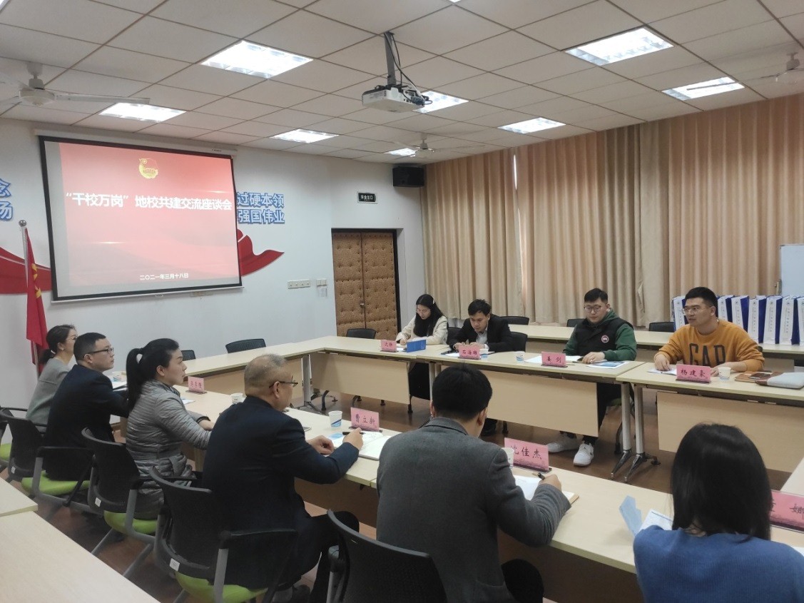 近日,校团委与广富林街道团工委在我校师生活动中心召开“千校万岗”地校共建交流座谈会,广富林街道社区事务受理中心主任曹立新、社区党群服务中心主任黄晓君、街道团工委副书记沈佳杰一行来校交流。我校团委、就业办、电子电气工程学院相关人员参加调研。