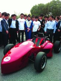 (A30-上海)由上海工程技术大学汽车工程学院学生自己制造的赛车昨天亮相2011大学生校园方程式汽车大赛,这辆被命名为“锐狮”号的小型单座赛车从最初的图纸设计、加工、组装到测试改进,最终的实物成型,都是大学生亲自完成。