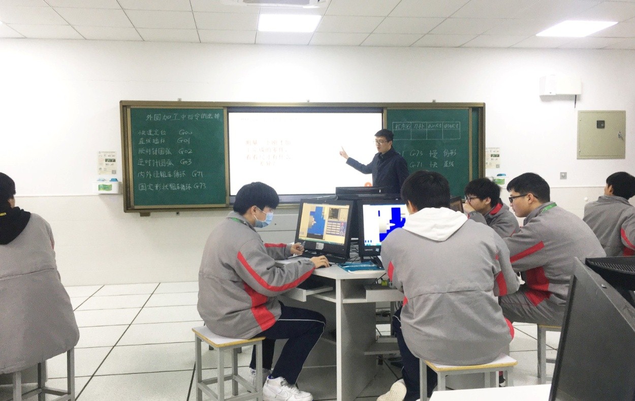 活动首先由沈文豪老师为大家展示了《外圆仿真加工中的指令选择》专业公开课。虽然课程内容抽象难懂,但是沈老师以饱满的热情,精心的教学设计,多元化教学手段的综合运用,以及张弛有度的课堂节奏,深入浅出地把课程内容讲通、讲透,较好地完成了预期的教学目标。
