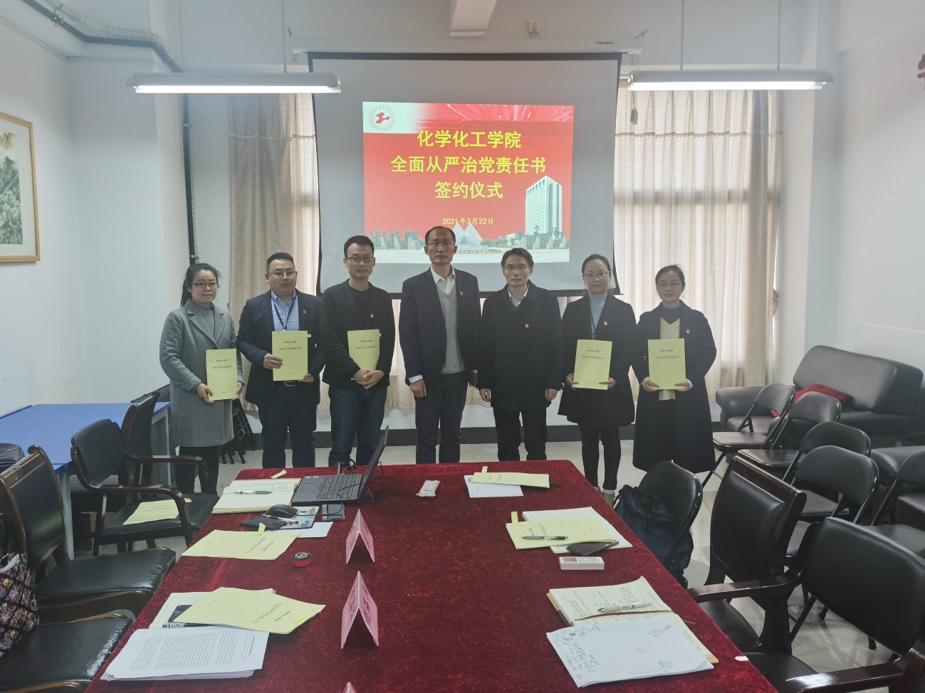 会上,学院领导与各党支部书记、系室主任等签署了《化学化工学院党委2021年全面从严治党责任书》。