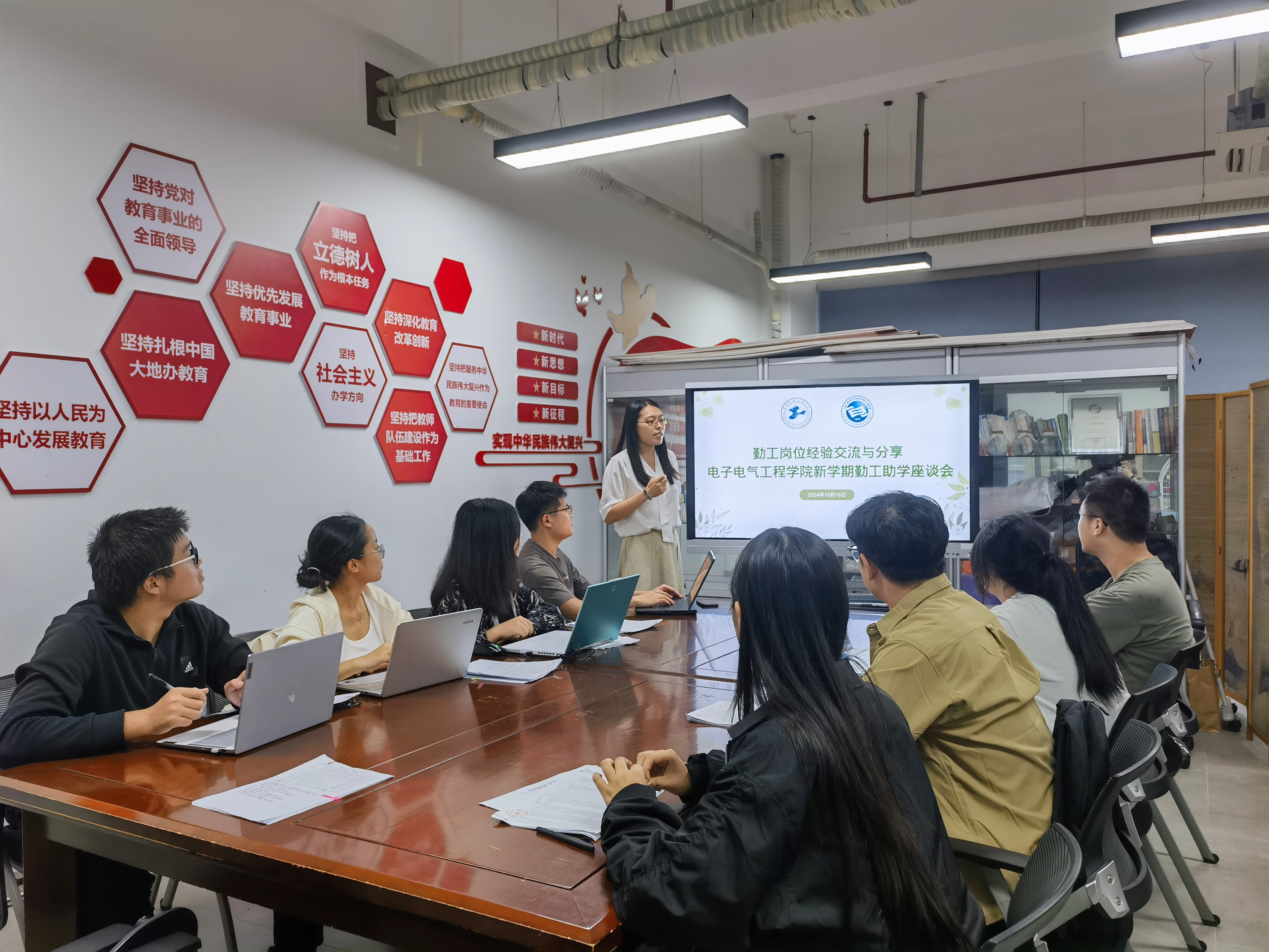 为深入做好勤工助学育人工作,提升资助育人水平和质量,广泛听取学生意见建议,搭建师生平等交流分享平台。10月16日,电子电气工程学院在现代交通工程中心7205召开主题为“勤工岗位经验交流与分享”的勤工助学座谈会。会议由负责学院资助工作的席老师主持,邀请了学院各勤工岗位中表现优秀的学生进行了工作经验交流分享,全体在岗勤工学生参会。