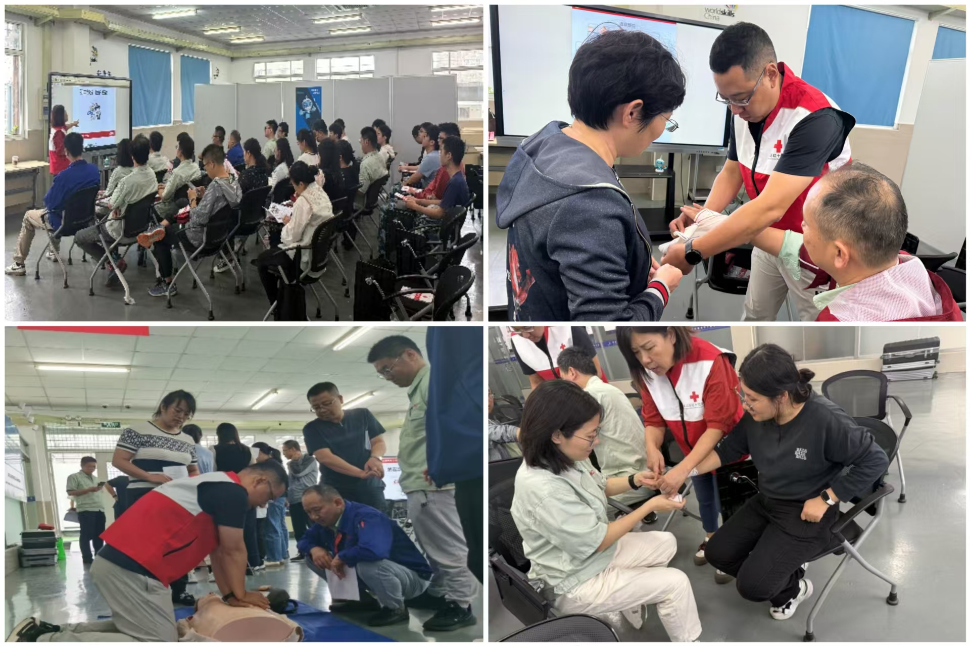 在培训师的悉心指导下,老师们轮流扮演伤员,模拟真实急救场景;创伤救护环节,老师们认真学习了止血、包扎和固定等技术。经过严格考核,参加培训的教职工顺利通过考核并取得红十字初级救护员证书。