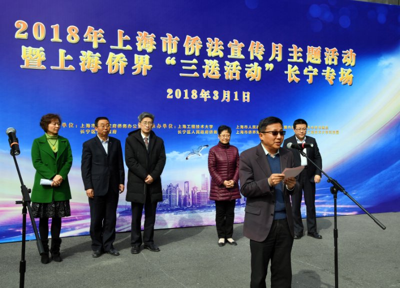 3月1日下午,由上海市人民政府侨务办公室、上海市长宁区政府主办、我校承办的“2018年上海市侨法宣传月主题活动暨上海侨界‘三送’活动长宁专场”在我校仙霞路校区举行。
