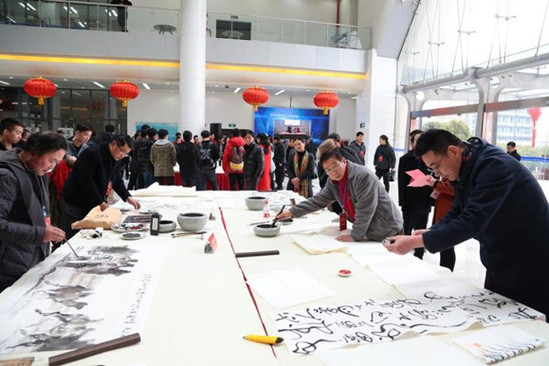 东方网3月2日消息:3月1日下午,第二十九届五区元宵书画笔会在上海工程技术大学举行。来自松江、杨浦、虹口、浦东和崇明的76名书画艺术家和广大书画爱好者齐聚一堂,泼墨挥毫,以艺会友,共迎传统元宵佳节。