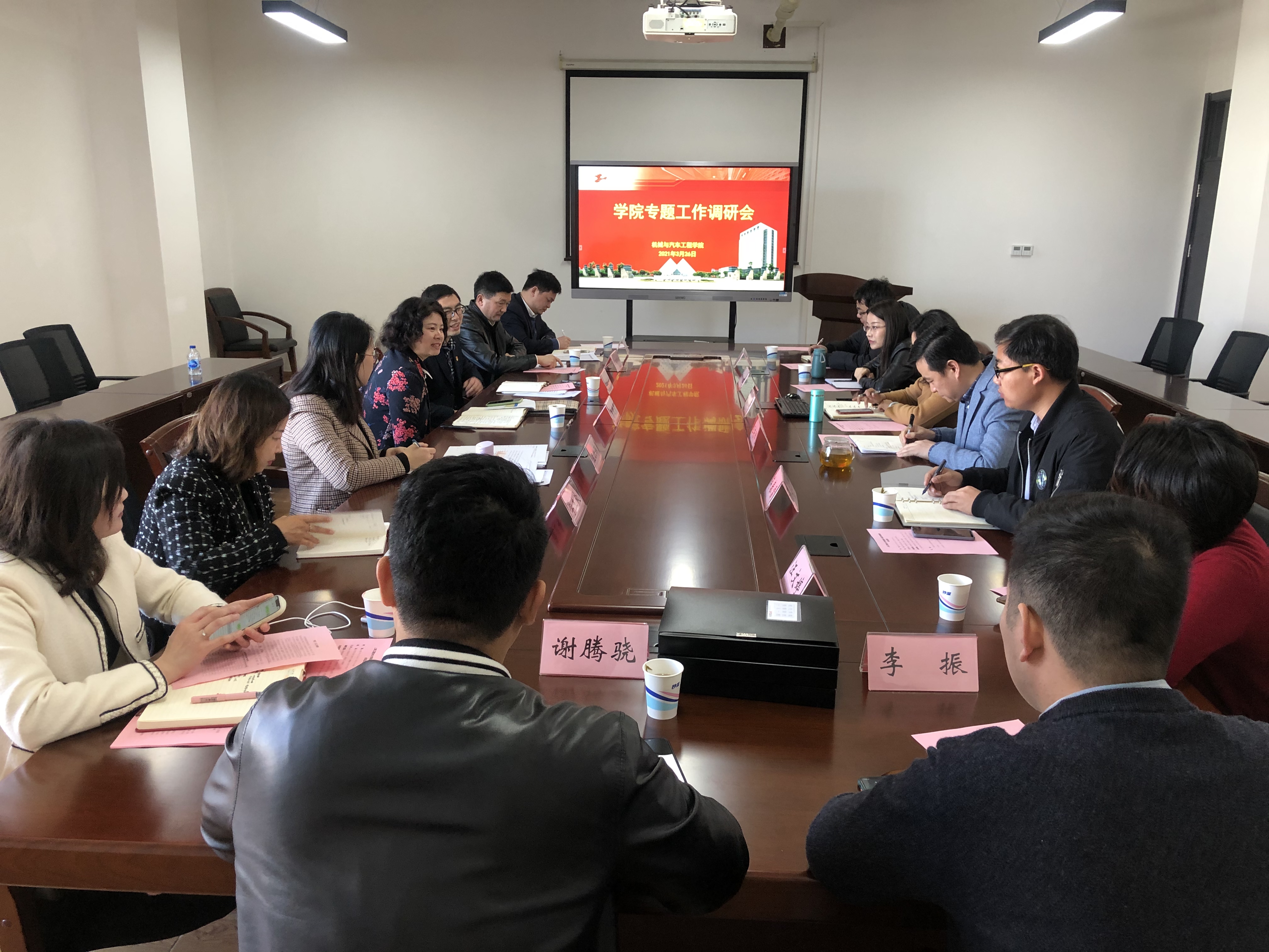 3月26日上午,校党委副书记、副校长朱晓青赴机械与汽车工程学院开展专项工作调研。党委办公室、纪委办公室、党委组织部、学生工作部(处)、校长办公室、校团委等有关部门负责人,机械与汽车工程学院党委书记虞蓉、党委副书记王东阳、学院党委委员、支部书记、辅导员等参加了调研会。调研会在现代交通工程中心8B604会议室举行,会议由虞蓉书记主持。