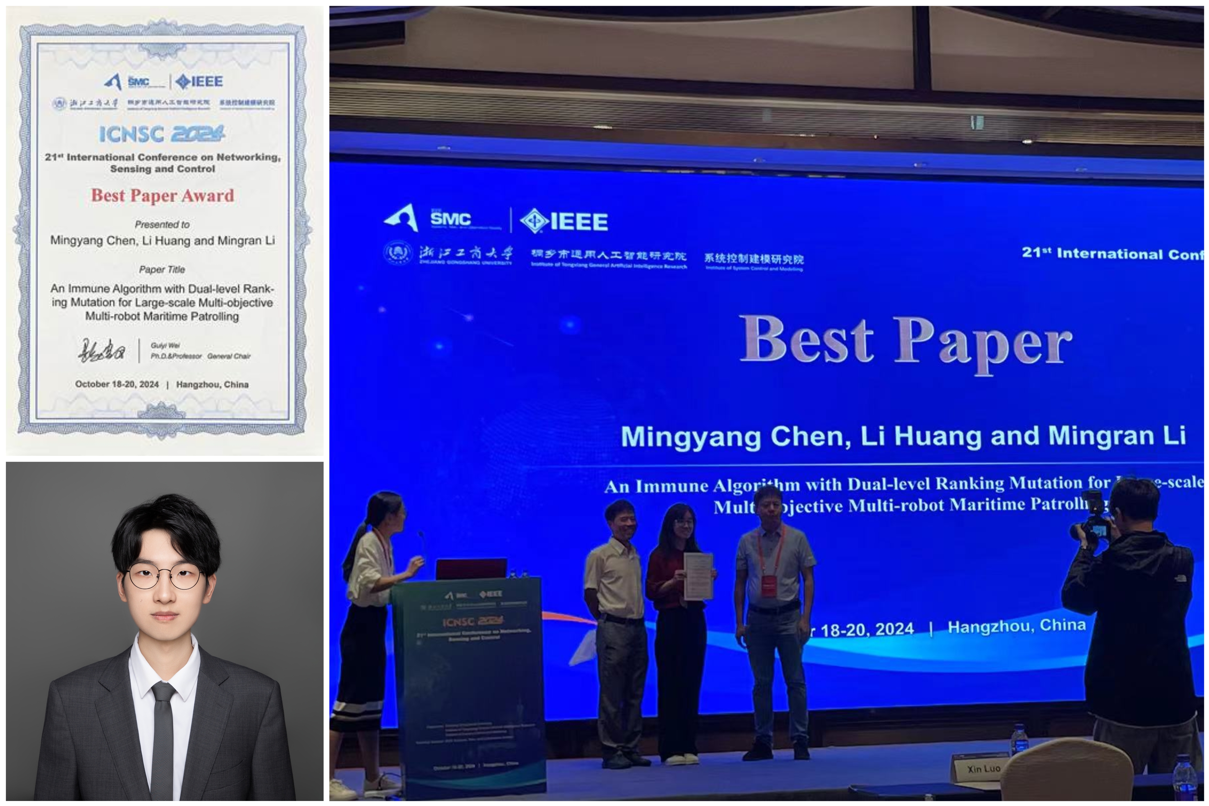 IEEE ICNSC是IEEE系统、人与控制论学会(IEEE Systems, Man, and Cybernetics Society)旗下的重要会议,涉及自动控制、计算机、电子以及系统工程等多学科领域。该国际会议每年举办一届,对于推动相关领域的国际学术交流与合作,促进国际间多学科交叉领域研究具有重要意义。本次会议最终评选出最佳论文奖(Best Paper Award)1篇、最佳应用论文奖2篇(Best Application Paper Award)、最佳海报奖(Best Poster Award)4篇。