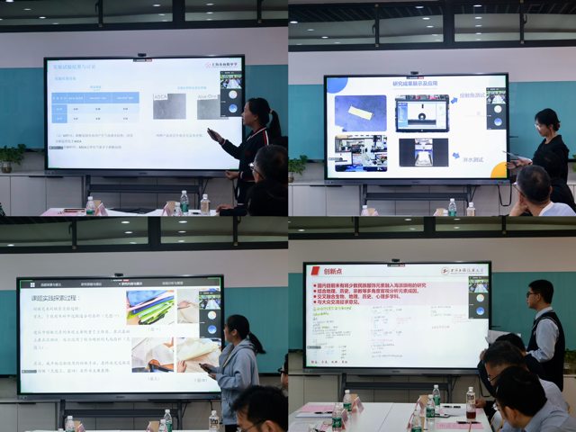 10月19日上午,纺织科学与工程实践工作站于艺术楼C210举办第九期推优答辩会。东方国际纺研院院长李健,上海市纺织工程学会秘书长马平春,上海市纺织科学研究院副院长张德良、李勇、王爱兵,校外导师林兰天、刘晓霞,上海纺织协会秘书长杜卫平高工,纺研院金平良高工、原化纤研究所高琮高工,纺织科学与工程实践工作站站长、纺织服装学院院长辛斌杰,实践工作站副站长胡越,上海纺织博物馆实践点指导教师戴璐,松江二中实践点指导教师蒋晨熙共同出席本次答辩会。答辩会由实践工作站副站长、纺织服装学院党委副书记谢志霞主持。