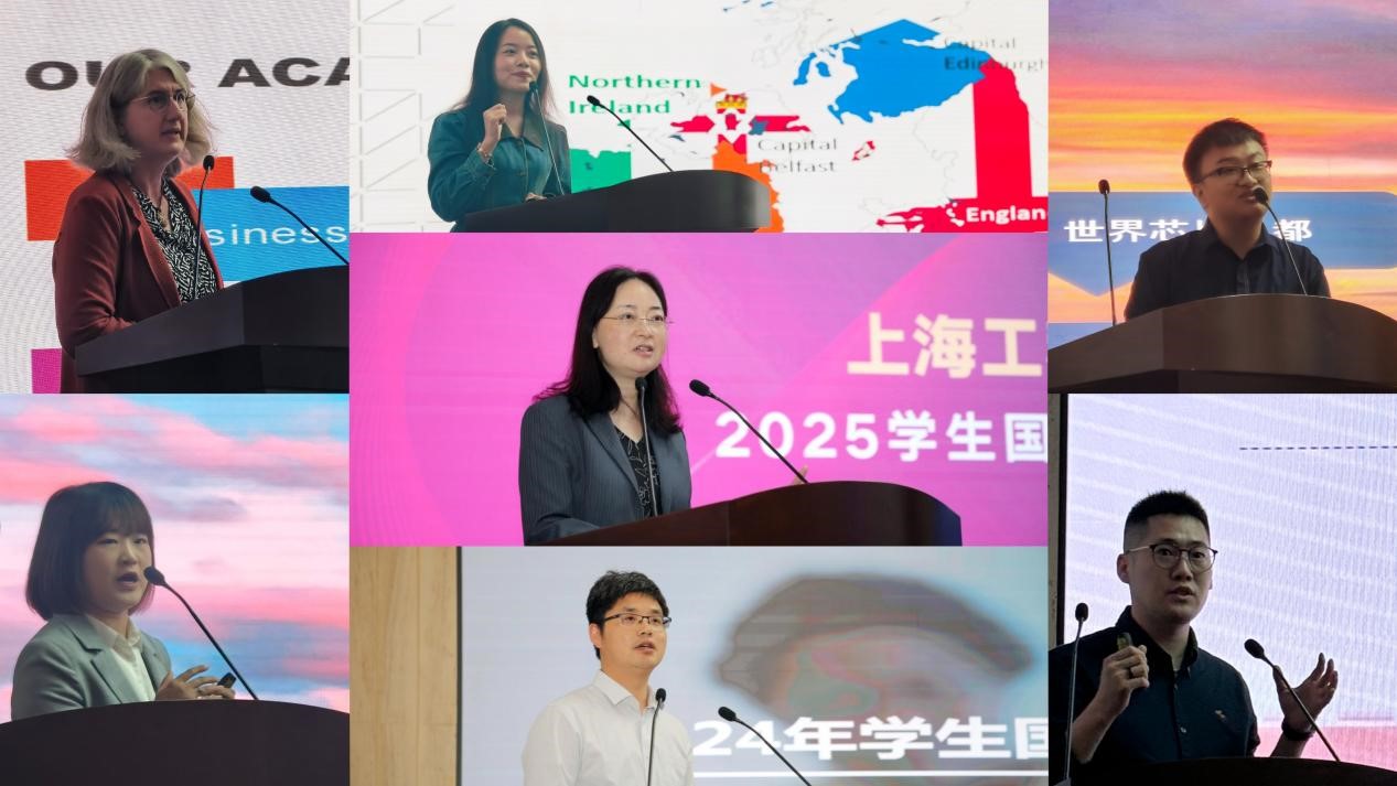在项目宣讲会环节,德国新乌尔姆应用技术大学、英国爱丁堡龙比亚大学、美国亚利桑那大学、欧洲国际组织实习项目、高水平国际研修交流项目组以及芬兰奥卢大学(线上)的校方代表或负责人分别就各合作院校的学习交流项目作了细致宣讲和介绍。