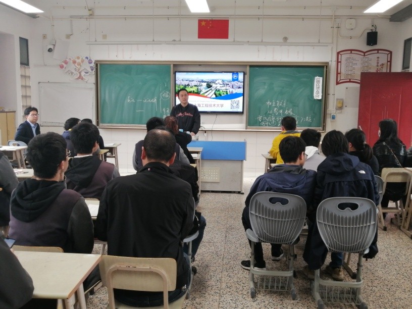 3月30日下午,城市轨道交通学院副院长郑树彬、校招办招生科万杉等前往上海市松江一中,向学校师生、家长开展高考招生宣讲。松江一中高三毕业生及家长50余人参加了宣讲会,松江一中副校长郭宁伟主持了宣讲会。