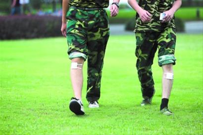 昨天,上海工程技术大学4800余名新生开始军训。两名新生“轻伤”不下火线,包扎后立即归队投入训练。(蒋迪雯 俞佳丽 摄) 可谓今年沪上高校最集中的开学报到日,从徐汇、闵行到松江、奉贤校区,多所大学从海内外迎来数万名大学生,他们的这一天特别不寻常。 上午9:30上海交大闵行校区新体育馆人流熙攘,一个身穿红色T恤、身形挺拔的女孩吸引了众人目光。伦敦奥运会平衡木亚军、体操运动员眭禄,如今有了一个新身份——大一新生。眭禄还没来得及逛完校园,当晚就要赶回北京,备战接下来的全运会。眭禄将修读人力资源管理专业,在赛季间歇回到校园上课,平时通过网络远程“听课”。 上午10:15华东师大通信工程系的郭旭光是一名受助学生。他前一天就从绿色通道领到了“爱心券”,走进“爱心屋”超市,凭券自购200多种学习生活用品,“这比高中时代单纯发些钱来得更加人性化。”听说志愿者人手不够,郭旭光便带着他们院系的其他几位受助生来帮忙,俨然一副“学长”模样。“昨天学长学姐帮我,今天我来帮他们,爱在华师大嘛!” 上午10:30来自智利的安东尼奥兄弟在大学新生中格外风度翩翩。哥哥35岁,弟弟33岁,在智利从事律师职业多年,如今到上海交大学习国际政治学。第一次见到校领导,他们拿出一个钥匙扣相送,“这上面印着我们智利的国旗!”党委书记马德秀则为两兄弟别上一对校徽,“希望你们在交大学到更多。” 下午1:30医学新生吴碧玉从学校发的新生礼包中,拿出一本薄薄的小册子,仔细读起来。这是由36封信集合成的一份礼物,作者是已毕业离校的36名医学生。“既然选择医学,努力刻苦是必需品!”除了谈及医学生繁重的学习任务,“前辈”们更多把笔墨聚焦于医学生的理想和责任。 下午 2:45沈应捷与其他 230多名MBA项目学员一起,在上海交大上海高级金融学院外合影留念。有意思的是,这批学员的就读点不一定在校园内——鉴于他们主要从事金融行业,今年学院首开“陆家嘴班”,选择环球金融中心作为上课地点,为学员提供地利之便。 下午4:00在上海对外贸易学院的校园舞台上,背景板上写着“大学生‘学’说话”几个字。原来,校内军训大部队的大一新生在此开展特训,即兴模拟“萍水相逢时和陌生人说话”场景。副校长陈洁点评说,人际交往应该是他们迈进校园的第一课。 原文链接:http://newspaper.jfdaily.com/jfrb/html/2012-09/09/content_878670.htm 转发链接:http://www.shanghai.gov.cn/shanghai/node2314/node2315/node4411/u21ai656945.html http://news.xinmin.cn/shehui/ http://www.people.com.cn/h/2012/0909/c25408-2050363468.html http://roll.sohu.com/20120909/n352668718.shtml http://news.cqnews.net/html/2012-09/09/content_19491089.htm