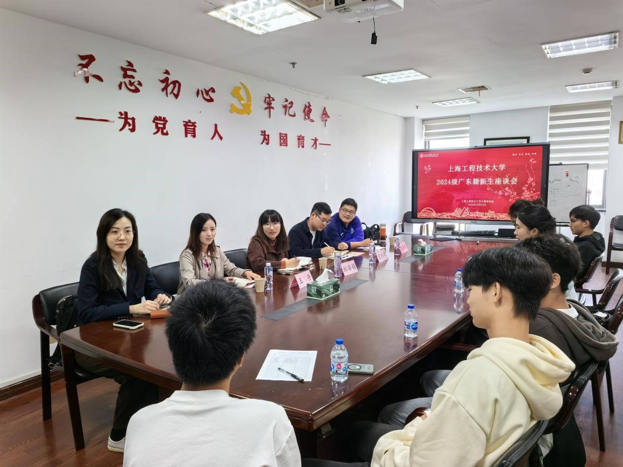 10月23日,教务处(招生办公室)和外国语学院在行政楼1308室举办2024级广东生源新生座谈会,强化地缘师生传帮带,帮助学生发展。外国语学院副院长杜丽娟,教务处(招生办公室)陈寅珕老师,学校广东籍教师代表、管理学院辅导员黄浜桐、外国语学院专任教师王丹和负责广州地区招生的教师王梦瑶与2024级广东籍新生欢聚一堂。